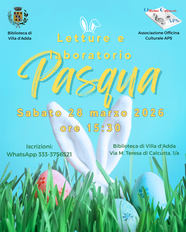 Associazione Officina Culturale Aps promuove presso la Biblioteca di Villa d'Adda letture e laboratorio di Pasqua, sabato 28 marzo alle ore 15.30.